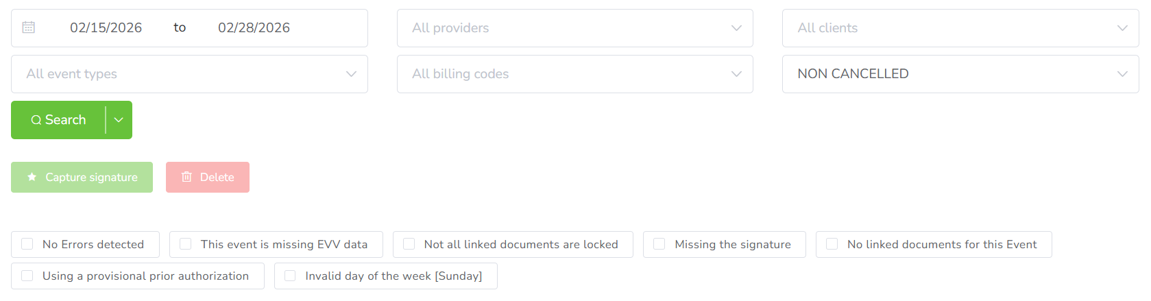 - Cancelation: You can filter by cancelation or not status. It will be non-cancelled by default.