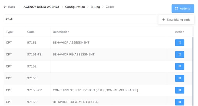 Click on New billing code to add a new code.