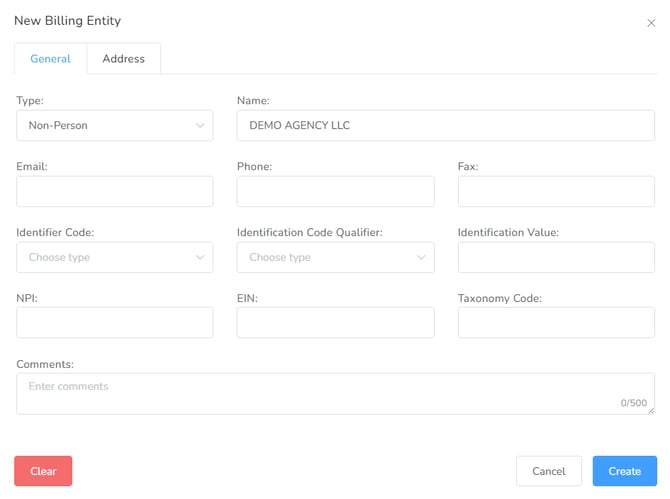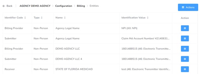 This section is to keep track of and add all the billing Entities for the agency.