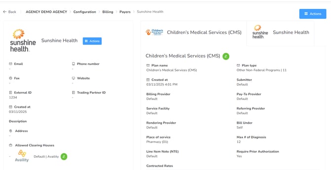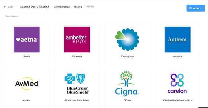 In this section, you can add and review the different Payers the agency has under contract.