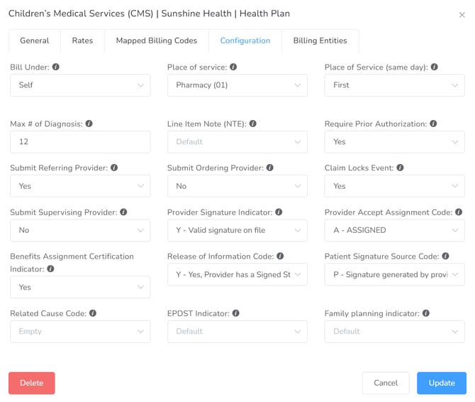 Once you’ve added the Payer, you can proceed to configure the billing codes and rates.