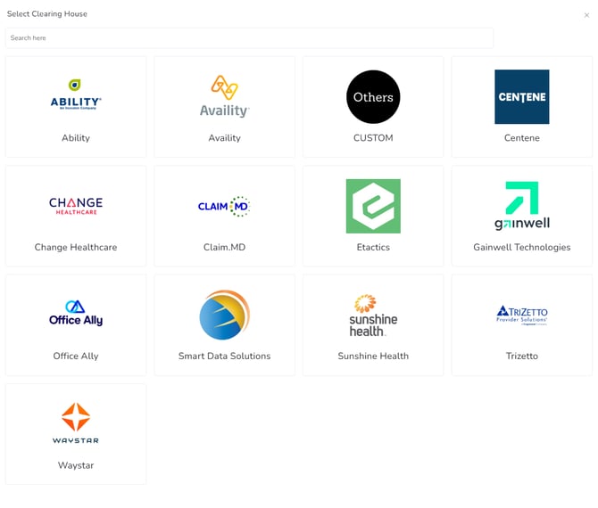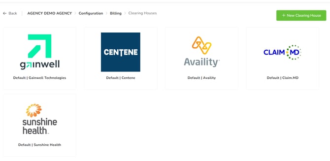 By clicking on the +New Clearing House green icon, you can select from the available options which one your agency employs.