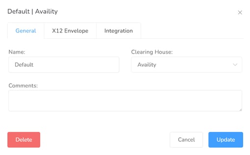 General: Use this section to define the Name, Clearinghouse type, and any internal Comments.