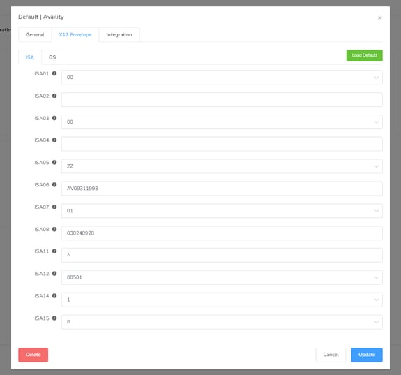 X12 Envelope: This tab displays the standard clearinghouse configuration. Most fields are pre-filled, but certain values should be managed using placeholders to ensure data integrity.