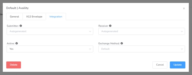 Integration: In this section, you must add the Submitter and Receiver information. You may also specify an Exchange Method to allow our platform to send files directly to the clearinghouse.