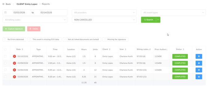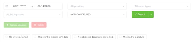 - Billing code: You can select the billing codes linked to the events you wish to filter for.