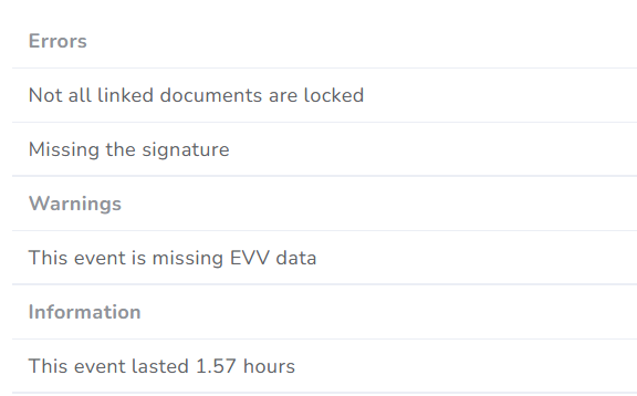 - Warning (yellow exclamation), represents there might be an issue but is not fully required.