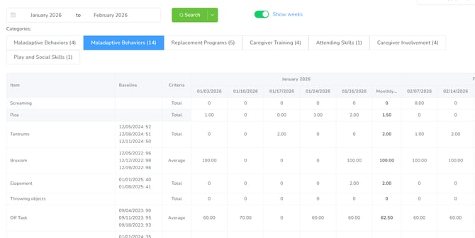 If you need a more detailed analysis, you can display the data values in weeks by turning the Show weeks switch green.