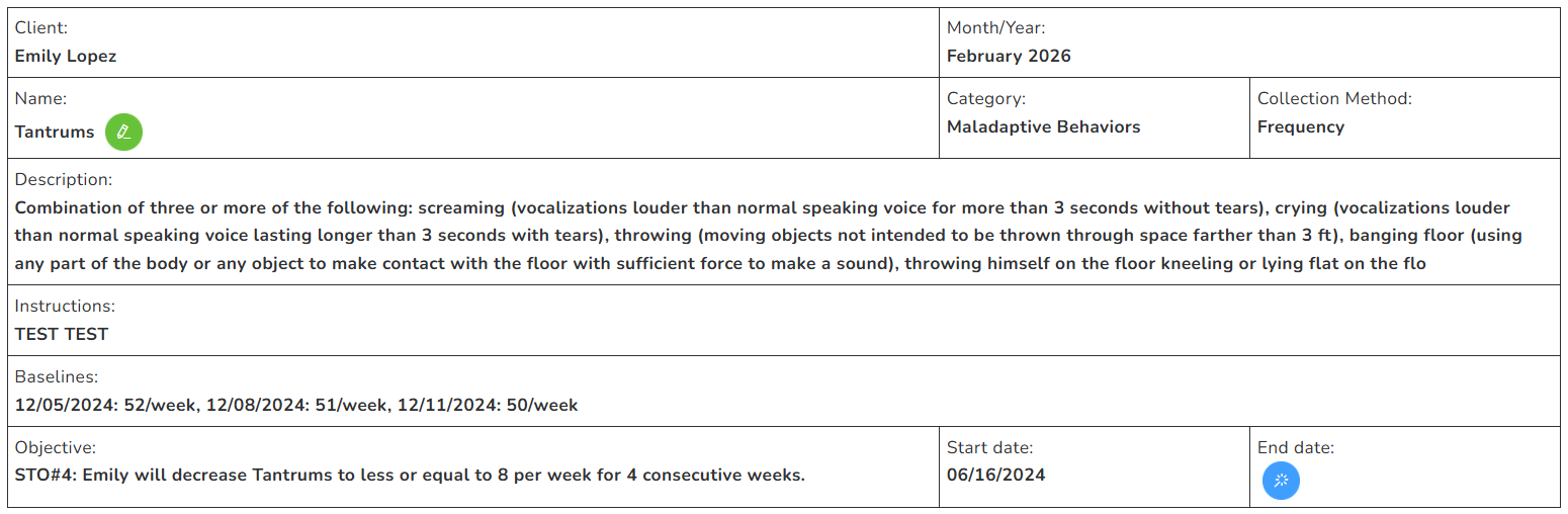 - Objective: The current objective for this datasheet, including name, start, and end dates (it will show a date if mastered).