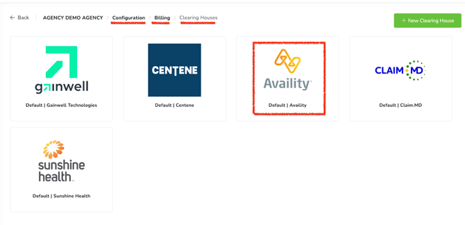 - Choose the clearinghouse you want to configure.