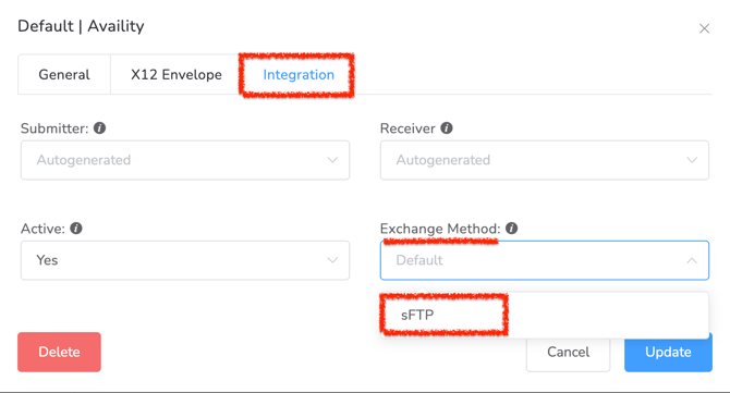 - In the Exchange Method field, select SFTP.