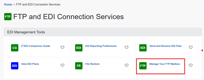 - Select FTP – EDI Connection Services.