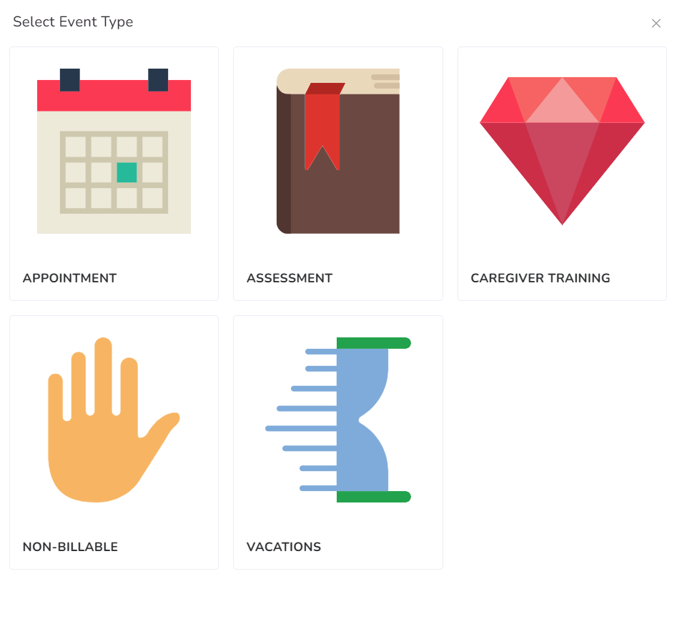 Step 3 – Click on the day you want to create the event. You will be prompted to select the event type you want to create.