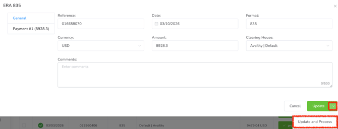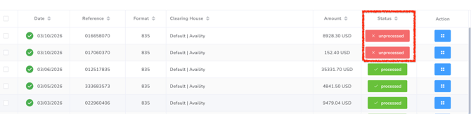 Once the 835 file has been uploaded to OP, it must be processed. You can identify whether the file has been processed by reviewing its status in the ERA list. If the file has not yet been processed, proceed with processing it.