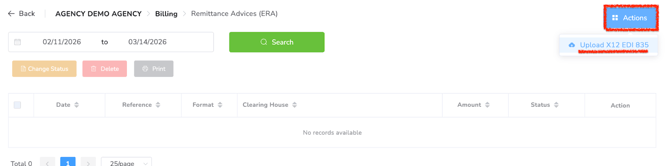 - Select Upload X12 EDI 835 Files