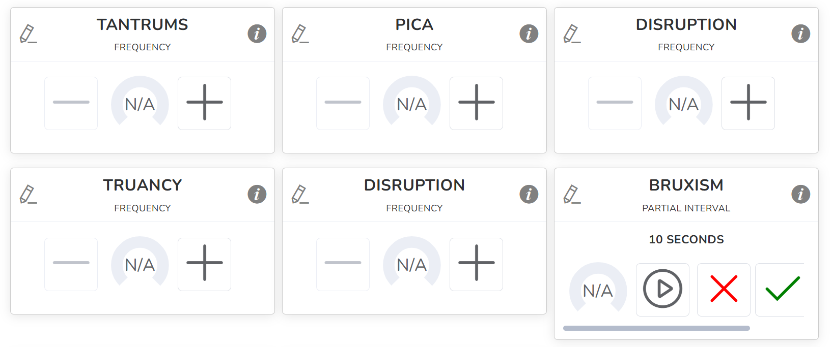 For introducing data, you will see the buttons associated with the data collection type of each item. You can click on each one to introduce the data in real time. If you misclick or make a mistake introducing the data, you can always step back to the last action.