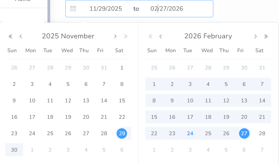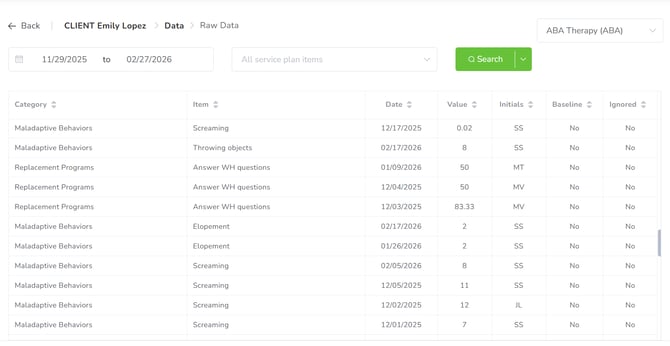 You can change the dates in the top left-corner selector. Please be aware that the list of available data will depend also on the approved start/end dates for every element in the Service Plan. By default, the last four months are displayed.