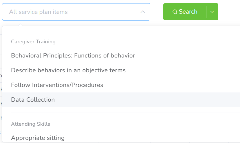 When searching, you can choose to browse through the entire service plan, or specific items within the same category or multiple categories of the service plan.