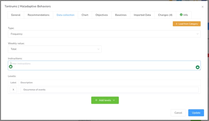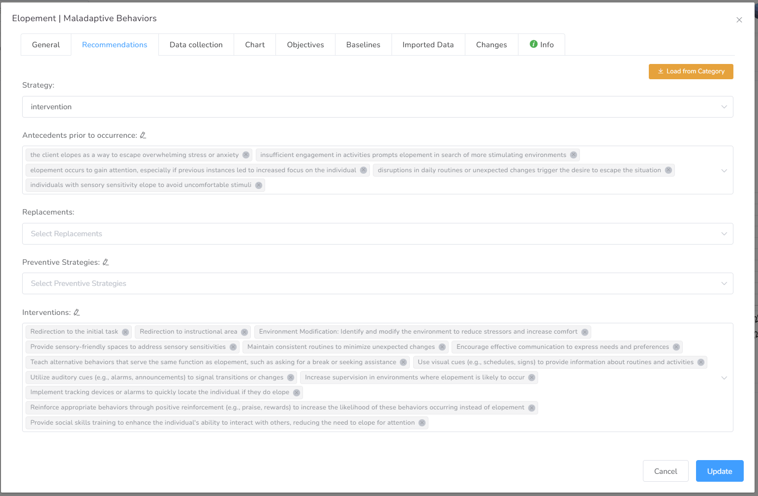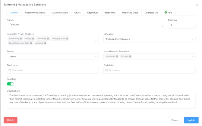 In this tab, you can manage interventions, reinforcers, antecedents, and pre-occurrence activities.