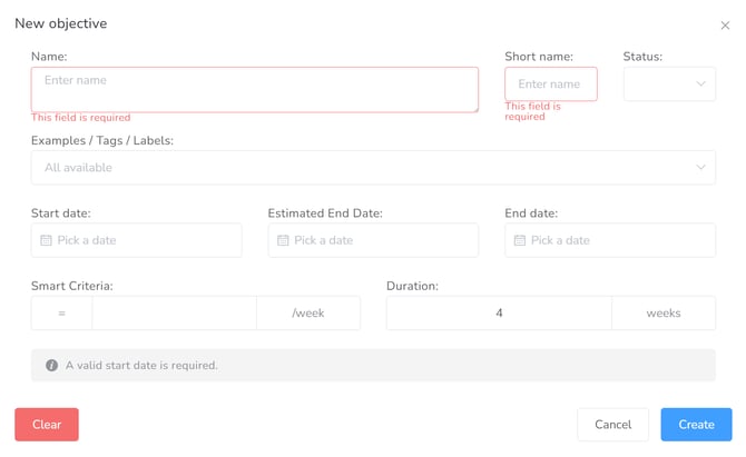 Add Objectives – Manually populates a new entry field, allowing you to enter objective details from scratch.