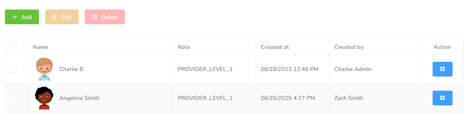 In this tab, you will be able to view and modify the credentials assigned in the system.