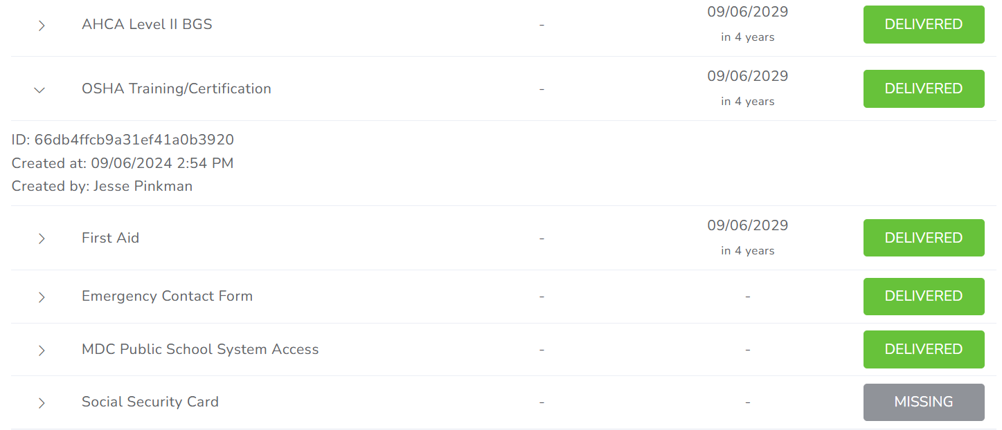 This section is very similar to the “Required Documents” page accessible from the user's dashboard.