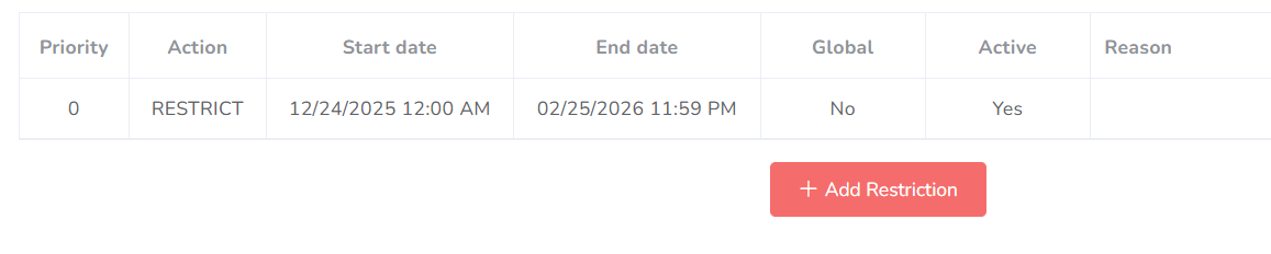 In this tab, you will be able to add and configure the restrictions preventing you from performing some actions, like creating, editing, and deleting events and documents.